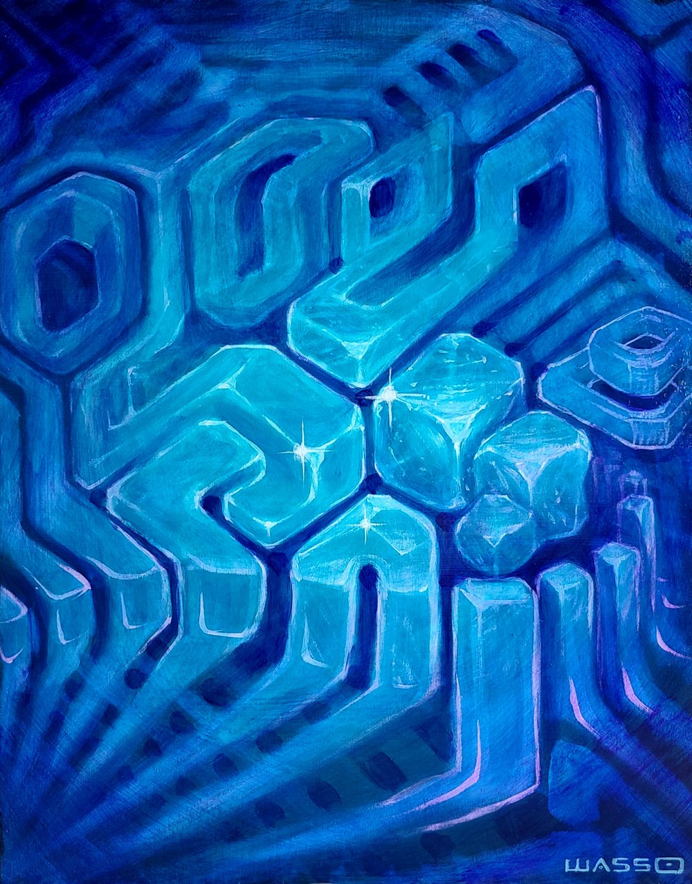 "Rhythm and Cubes" is an original acrylic painting on wood, by Wasso Kozlina IV.